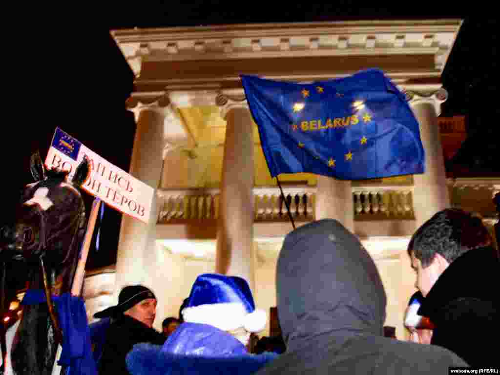 На разьвітаньне Саньнікаў і Някляеў разам зачыталі верш «А хто там ідзе…». Заклікалі прыйсьці на плошчу 19 сьнежня