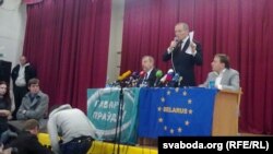 Кандыдаты на прэзыдэнты Ўладзімер Някляеў і Андрэй Саньнікаў правялі супольную прэсавую канфэрэнцыю з ацэнкай выбарчай кампаніі і падрыхтоўкай агульнай пазыцыі на плошчы.