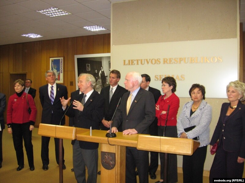 "Спадар Лукашэнка не на тым баку гісторыі, – дадаў сэнатар-рэспубліканец Джон Маккейн. – Раней ці пазьней мы ўбачым дэмакратыю і свабоду ў Беларусі таксама як ў Літве, Латвіі і Эстоніі. Народ у Беларусі ведае вельмі добра, што дэмакратыя існуе ўжо ў ягоных суседзяў. І беларусы будуць мець тую ж свабоду."