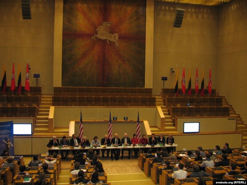 Спатканьне сэнатараў з студэнтамі ЭГУ адбылося ў сьценах літоўскага Сойму, у "Залі 11 сакавіка", і доўжылася каля 30 хвілінаў.