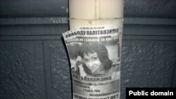На менскіх вуліцах зьявіліся партрэты зьняволеных старшыні “Маладога фронту” Зьмітра Дашкевіча і яго намесьніцы Насты Палажанкі.