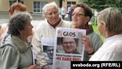 12:00 Актывісты Саюзу палякаў пад сьценамі суду скандуюць «Свабоду!» і «Ганьба!».
