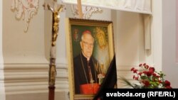 Кветкі і сьвечкі да труны памерлага архіпастыра несьлі шматлікія вернікі, якіх касьцёл на жалобнай імшы нават не ўмясьціў: