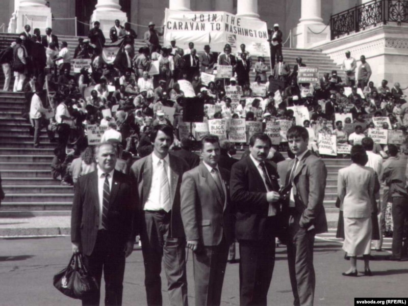 Візыт беларускіх дэпутатаў у ЗША па пэрсанальным запрашэньні амэрыканскіх кангрэсмэнаў. 1992 г. Уладзімер Заблоцкі, Лявонці Зданевіч, Леанід Прывалаў, Уладзімер Станкевіч, Віктар Ганчар.