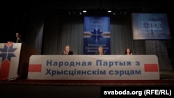 У залі, дзе адбываецца зьезд — бел-чырвона-белы сьцяг, вывешаныя партрэты беларускіх палітвязьняў, на сцэне сымболіка БХД, расьцяжка «Народная партыя з хрысьціянскім сэрцам». З 111 вылучаных дэлегатаў прысутнічае 108.