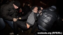 19:40 Яшчэ блізу дзясятка чалавек заштурханыя ў міліцэйскія аўтобусы каля плошчы Незалежнасьці. Пры гэтым спэцназаўцы груба валаклі людзей па зямлі. Спробы жанчын адбіць малітоўцаў бясплённыя. Міліцыянты таксама забралі ўсе партрэты палітвязьняў.