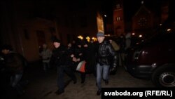 19:45 Да сьценаў Чырвонага касьцёлу падагналі яшчэ два міліцэйскія мікрааўтобусы, працягваюцца затрыманьні людзей, якія сабраліся на малебен.