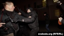 19:25 На месцы малебну ля Чырвонага касьцёлу ўдзельнікі разгарнулі партрэты палітвязьняў, чуюцца воклічы «Свабоду палітвязьням» і «Жыве Беларусь». На іх адразу напалі людзі ў цывільным, каля дзясятка чалавек зацягнулі ў мікрааўтобусы. Сярод затрыманых — адзін зь лідэраў прадпрымальніцкага руху Алесь Макаеў.