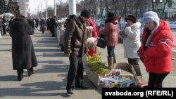 У Магілёве на Грабянёўскім рынку сьвяточная мітусьня. Пакупнікі снуюць між гандлёвымі радамі ў пошуках падарункаў жанчынам. За прылаўкамі ў бальшыні сваёй таксама жанчыны. Паводле гандлярак, два першыя месяцы гэтага году прамінулі без асаблівага наплыву пакупнікоў: