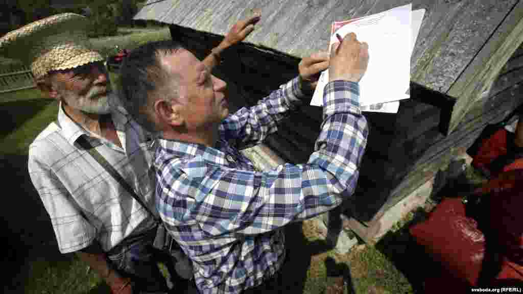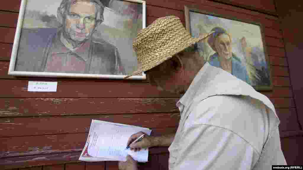 Удзельнікі імпрэзы пішуць дыктоўку. Тэкст дыктоўкі ўзяты з кнігі «Быкаў на Свабодзе»