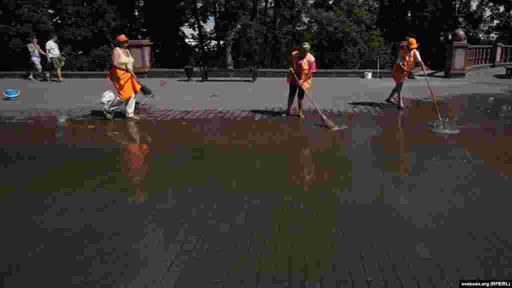 З самай раніцы супрацоўнікі «Зелянбуду» дзяжураць на вуліцах.