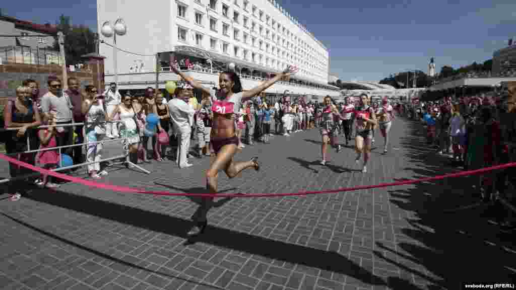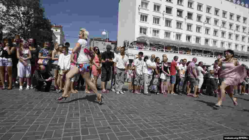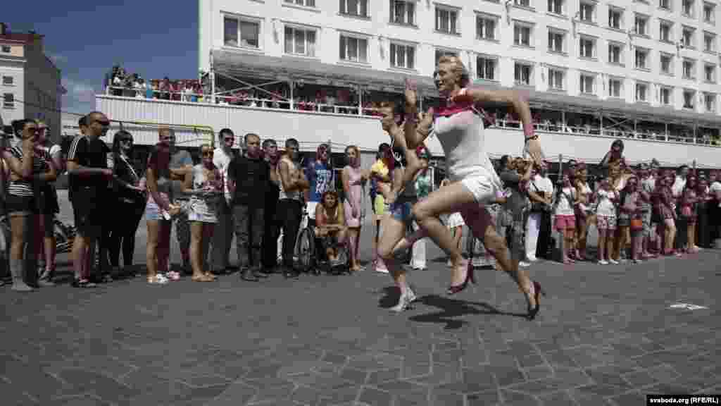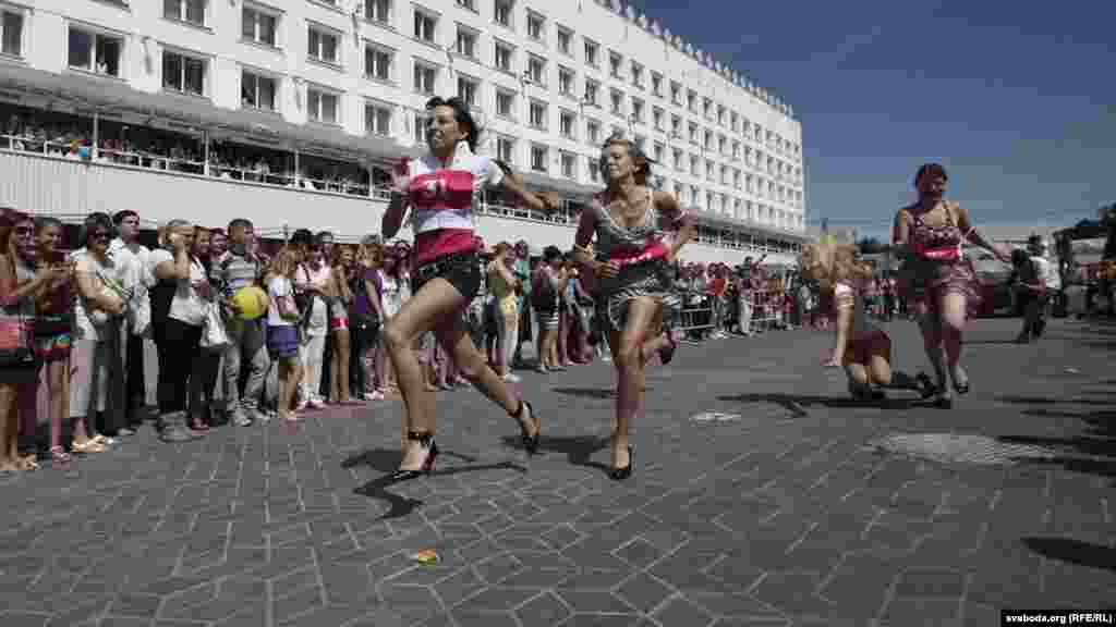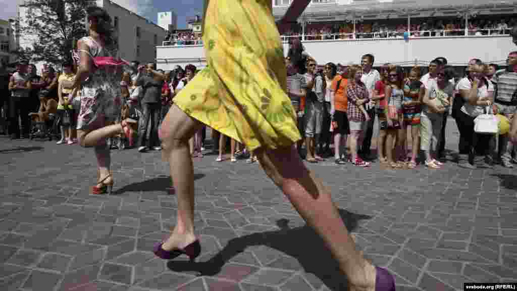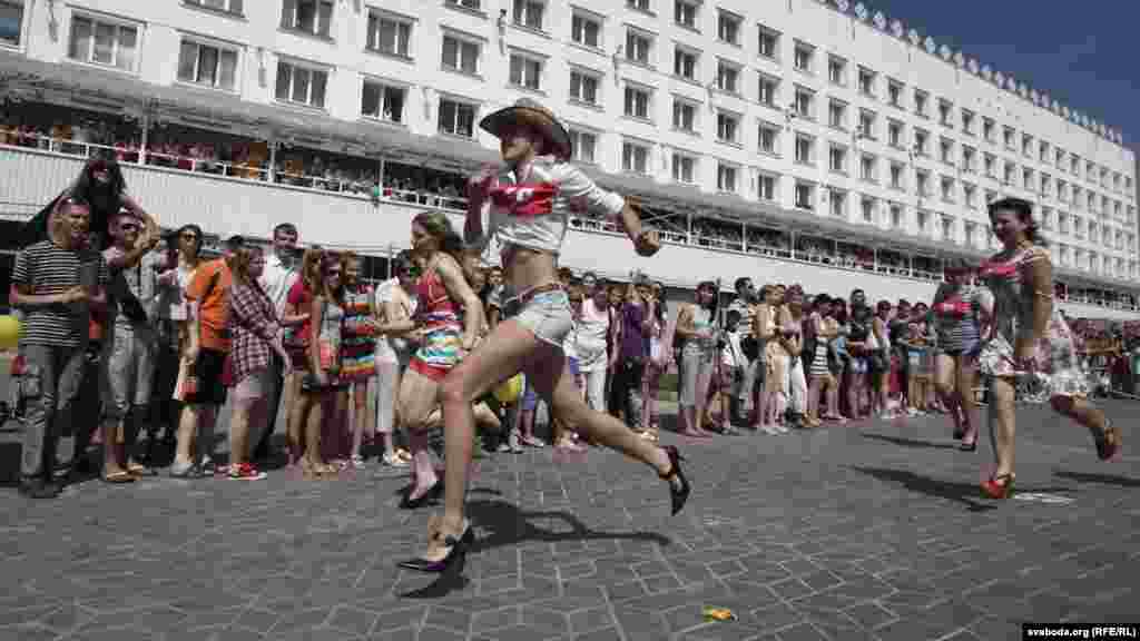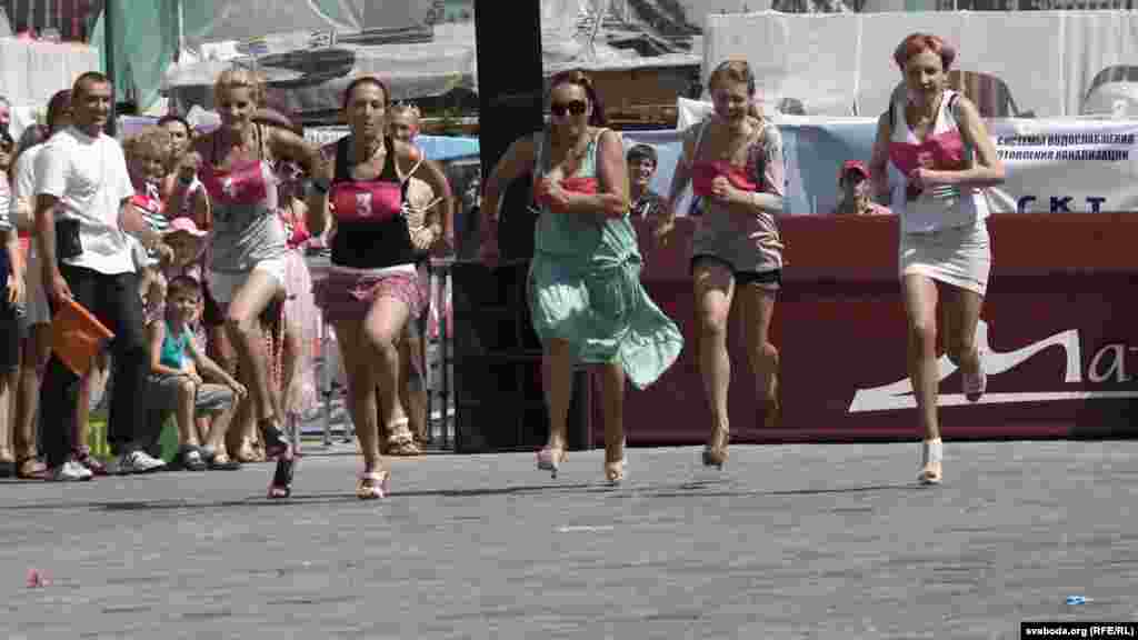 Віцебскі цэнтар моды зладзіў спаборніцтвы па бегу на абцасах. Прычым, абцасы мусілі быць не карацейшымі за 7 сантымэтраў.