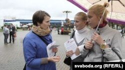 Мінакам раздавалі ўлёткі з заклікам «Ня быць скотам!» і віншаваньне з «залатой» восеньню, калі выбарцаў чакае значнае павелічэньне цэнаў.