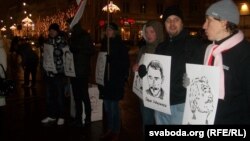 «Зараз знаходжуся ў сымбалічнай клетцы. Тут таксама сваякі палітвязьняў, уцекачы. Нас некалькі дзясяткаў. Трымаем у руках партрэты палітвязьняў, бел-чырвона-белыя сьцягі. Шмат людзей падыходзіць, цікавяцца, што азначае гэтая клетка. Мы кажам пра Беларусь, якая два гады таму выйшла на Плошчу».