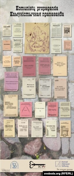 Арганізатары выставы спрабавалі правесьці яе і ў Менску. І, як яны расказваюць, частка экспанатаў - копіі гістарычных дакумэнтаў на плякатах - была затрыманая на літоўска-беларускай мяжы, і гэтыя экспанаты не пусьцілі ў Беларусь, патлумачыўшы, што яны былі не належна аформленыя.