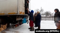 Машына з харчамі пад’яжджае ад лесу. Ісьці сюды ад хаты Марфы і Віктара — мэтраў 800, па глыбокім сьнезе дарога займае хвілін 15.