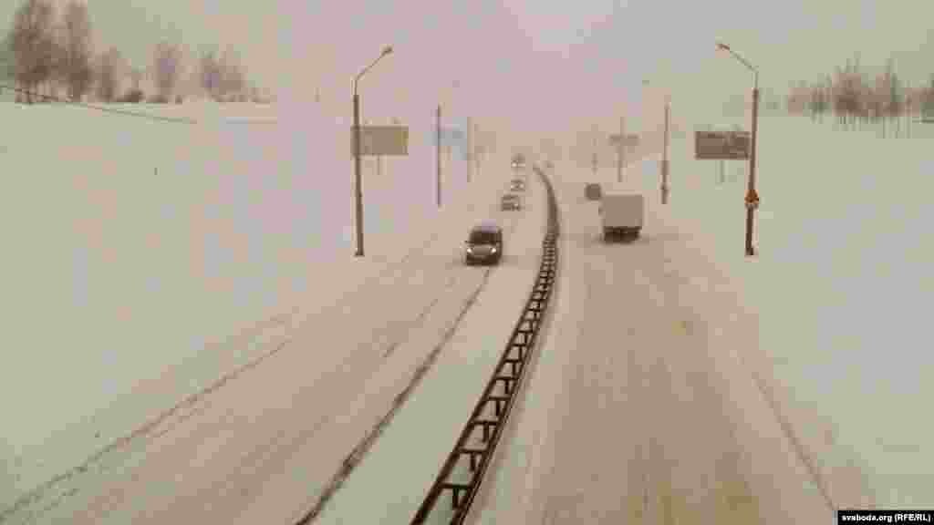 На Магілёўшчыне 50 паселішчаў без электрычнасьці. Аварыі на дарогах. Камунальныя службы не пасьпяваюць чысьціць ад сьнегу дарогі.