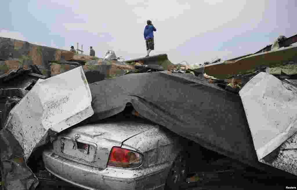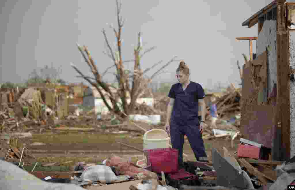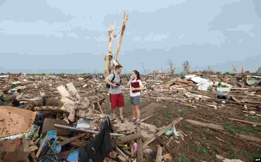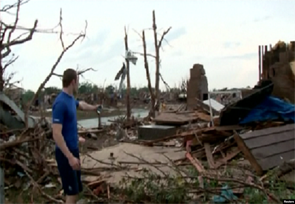 Магутны ўраган, які прайшоў па прадмесьцях Аклахома-Сіці, зраўняў многія будынкі зь зямлёй.
