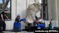 Цяпер на здымках добра бачны Пагоня і Карона. Пасьля ўсталяваньня картуша спэцыяліст па рэстаўрацыі з Польшчы правядзе дадатковыя рэстаўрацыйныя працы.