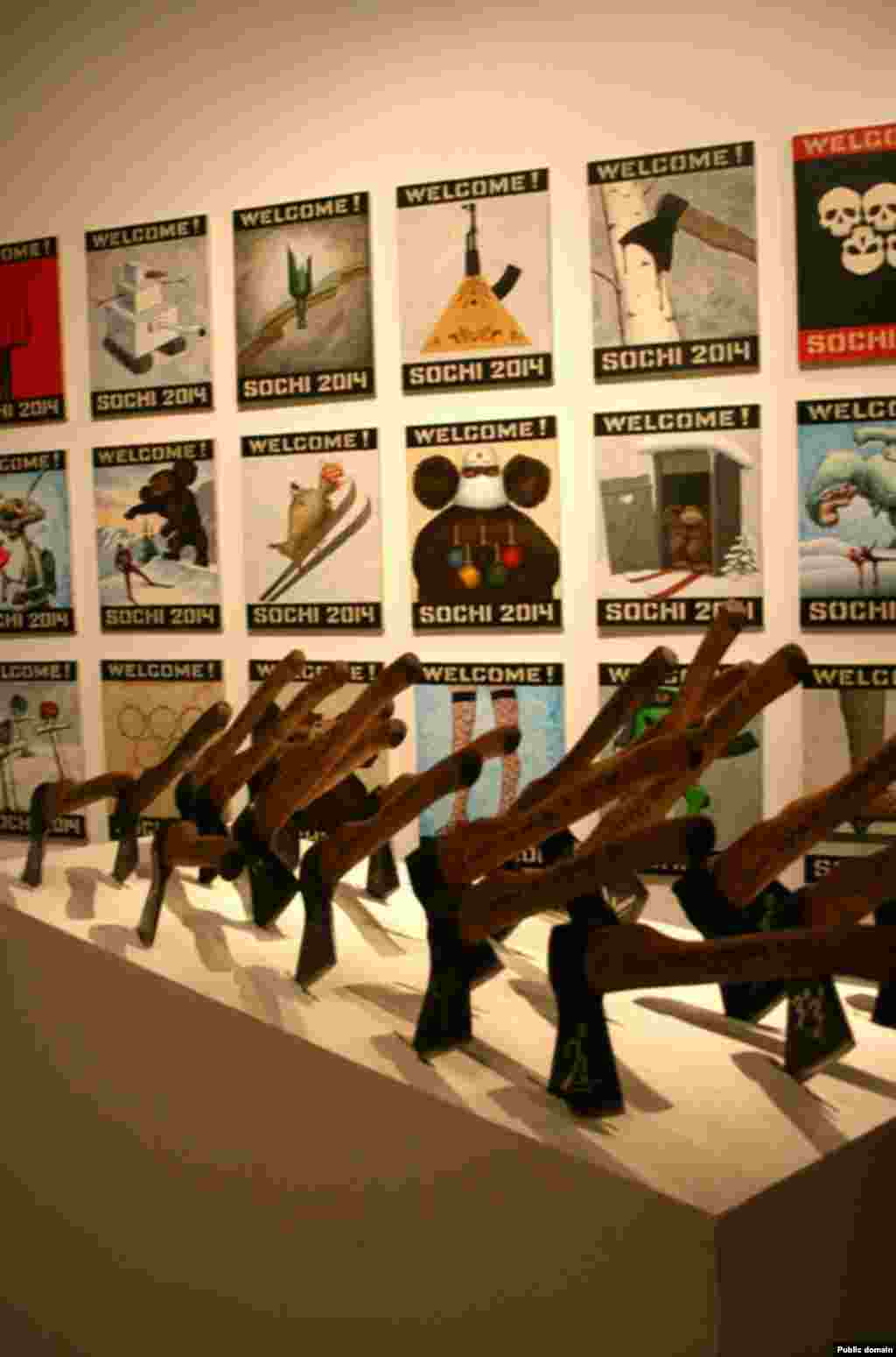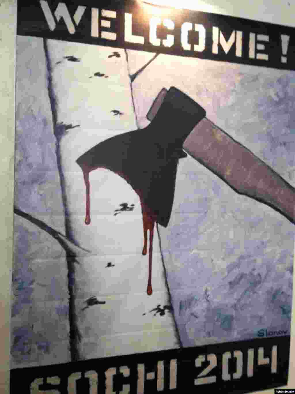 Пакуль Расея рыхтуецца прыняць зімовыя Алімпійскія гульні 2014 году ў Сочы, мастак Васіль Слонаў арганізаваў выставу сатырычных малюнкаў, дзе парадуецца дзяржаўная піяр-кампанія па прасоўваньні Алімпіяды ў Сочы. У сэрыі постэраў ён сумясьціў спартовыя сцэны і застрашальныя вобразы рэпрэсіўнай Расеі. Выстава была зладжаная падчас культурнага фэстывалю «Белыя ночы» у Пярмі, гэтая выстава хутка зьвярнула на сябе ўвагу ўладаў: яе зачынілі і звольнілі куратара Пермскага музэю сучаснага мастацтва, дзе яна праходзіла. У якасьці афіцыйнай падставы было названае несанкцыянаванае выкарыстаньне Слонывым сымболікі Алімпіяды ў Сочы.