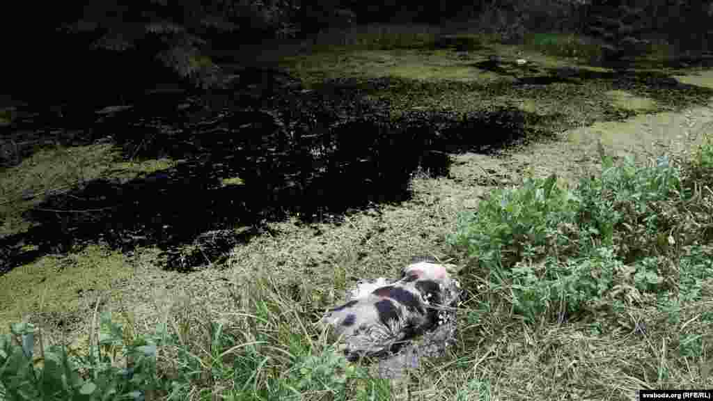 Пры дарозе на вёску Песевічы (за 4 км ад Чапуні) ў сажалцы ляжыць дохлая сьвіньня