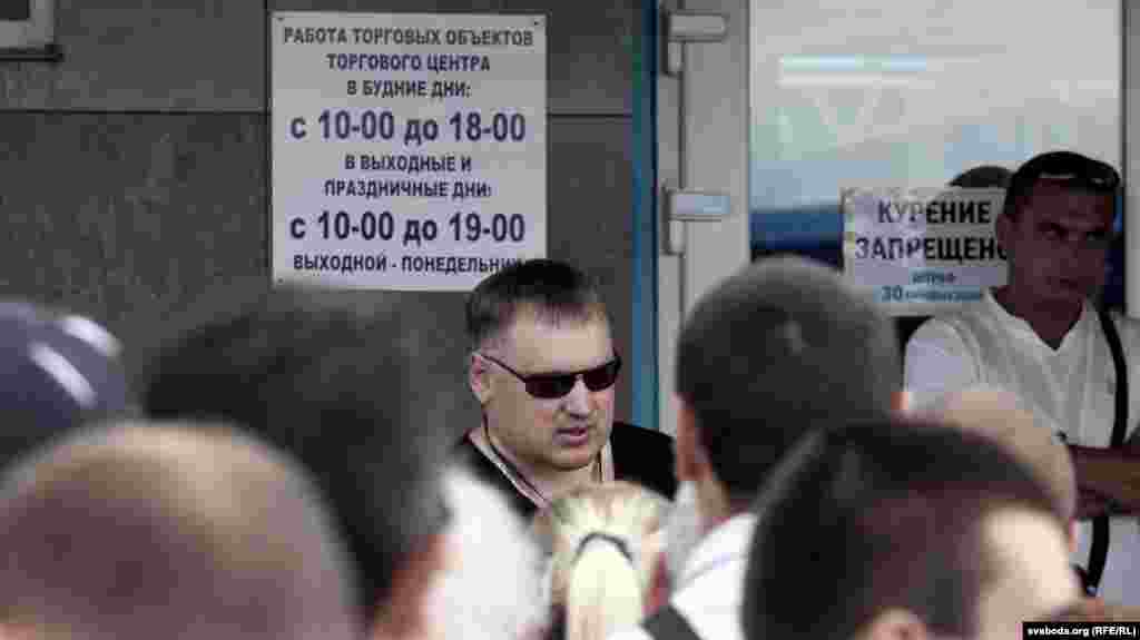 Прадпрымальнікі просяць ччалавека ў цывільным з камэрай паказаць пасьведчаньне
