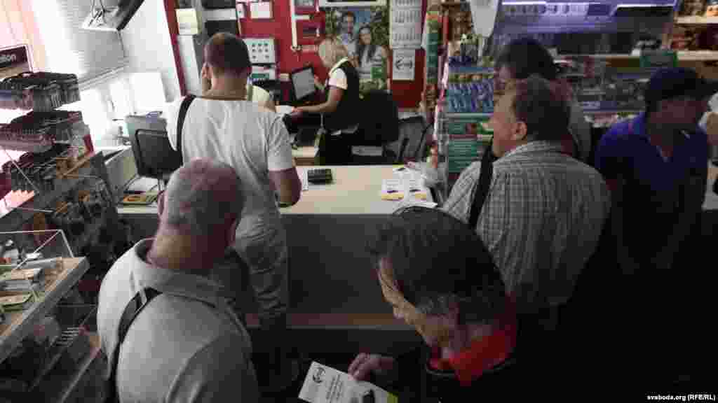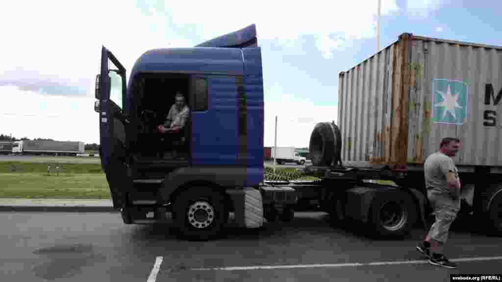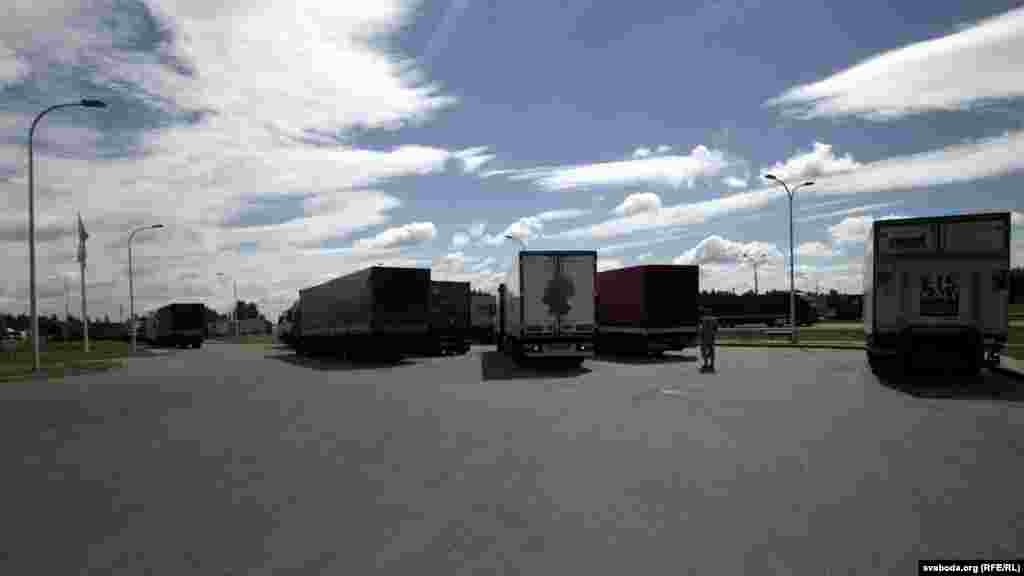 Чарга на запраўцы № 38 “Беларуснафты”. 57 кілямэтар трасы Менск – Гародня. Апэратар нацыянальнай электроннай сыстэмы збору платы за праезд па шэрагу аўтадарог Беларусі заявіў, што перавозчыкі маглі загадзя паклапаціцца аб рэгістрацыі ў сыстэме і атрыманьні бартавой прылады, а не стаяць цяпер у чэргах.
