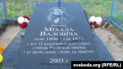 У мармуры выбіты партрэт Валовіча й імёны 10 паўстанцаў — два імя высьветліць не ўдалося.