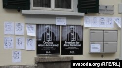 Паводле ўдзельнікаў, на будынку беларускага кансуляту былі расклееныя ўлёткі з адрасамі 12-ці палітзьняволеных, а таксама два плякаты з патрабаваньнем «Свабоду Алесю Бяляцкаму» па-расейску і па-ангельску.