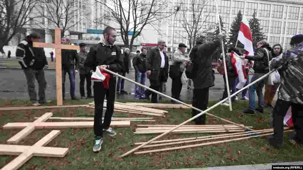 Дзядоўскае шэсьце скончылася. Затрыманы чалавек у майцы «Лукашенко, уходи»