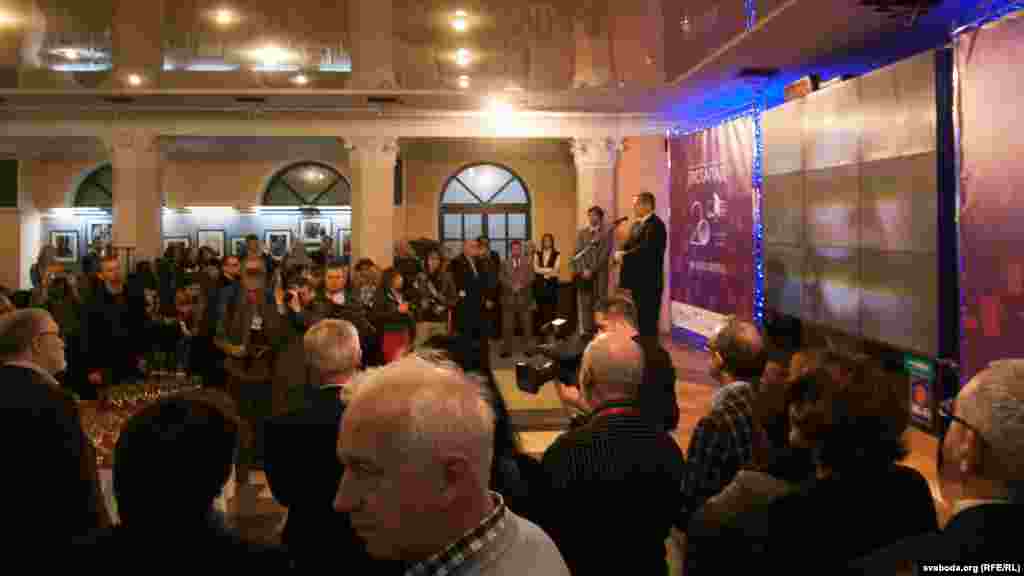 Сярод гледачоў выставы — пробашч касьцёла сьвятых Сымона і Алены ў Менску Уладзіслаў Завальнюк