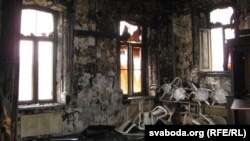 Вокны на другім паверсе зьлева зеўраюць. Калі ўваходзіш у будынак, зьлева яшчэ капае вада. Направа — пакой дзяжурнага. На другім паверсе бачныя вынікі пажару, але пакой ня выгараў цалкам.
