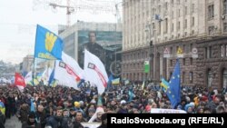 У пратэстнай акцыі ў Кіеве бяруць, паводле розных ацэнак, ад 200 да 500 тыс. чалавек.