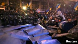 На вуліцы Грушэўскага, якая перакрытая кардонам унутраных войскаў, сабралася некалькі тысяч мітынгоўцаў з Эўрамайдану, якія спрабуюць прарвацца да Ўрадавага кварталу, піша Ўкраінская праўда.