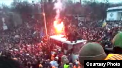 Яны гэта зрабілі пасьля таго, як загарэўся адзін зь міліцэйскіх аўтобусаў, які стаяў папярок вуліцы. Затое да месца сутычкі падцягнуліся некалькі тысяч мірных пратэстоўцаў з майдану Незалежнасьці.