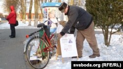 Пікетоўцы — чацьвера актывістаў кампаніі «Гавары праўду» — выставілі агітацыйныя стэнды ў самым цэнтры горада — уздоўж вуліцы Леніна, каля гарадзкога дома культуры. На пікет прыйшлі і двое прыхільнікаў БХД, якія таксама йдуць на выбары.