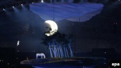 Алімпійскі гімн выканала знакамітая опэрная сьпявачка Ганна Нятрэбка, спартоўцы, трэнэры і судзьдзі прынесьлі Алімпійскую прысягу.