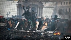 Як паведамляе УНІАН, «Беркут» адышоў да вуліцы Альгінскай і працягвае выкарыстоўваць гранаты са сьлезацечным газам.