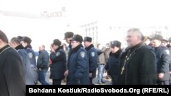 Каля ста міліцыянтаў са Львова прыехалі на Міхайлаўскую плошчу на аўтобусе. Большасьць службоўцаў у форме, некаторыя ў цывільным. Міліцыянты маюць розныя званьні, сярод іх адстаўнікі і воіны-аўганцы.