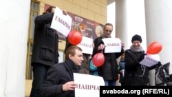 На ганку тэатру сабралася пад тры дзясяткі чалавек: акторы-«коласаўцы» і супрацоўнікі тэатру, а таксама студэнты тэхналягічнага ўнівэрсытэту і вучні сярэдняй школы № 21, запрошаныя арганізатаркай — акторкай Анастасіяй Чыстабаевай.