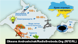 Болей за 80 % пітной вады і электраэнэргіі Крым атрымлівае з Украіны. А выдаткі аўтаноміі больш чым на палову забясьпечваюцца дзякуючы грошам з украінскага дзяржбюджэту.