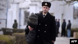 Тым часам карэспандэнт Свабоды Андрэй Шараградзкі, які знаходзіцца ў Крыме, стаў сьведкам таго, як украінскія афіцэры пакідалі штаб Ваенна-марскіх сіл Украіны ў Севастопалі, захоплены «рускім блёкам» і «севастопальскай самаабаронай». Паводле яго, украінскія марскія афіцэры, многія ўжо пераапранутыя ў цывільнае, з поліэтыленавымі мяшкамі, зь якіх тырчэлі мундзіры, пакідалі будову з падаўленым выглядам і адмаўляліся ад інтэрвію.