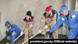 Сёньня яму ў памагатыя была прыстаўленая біятляністка, трохразовая алімпійская чэмпіёнка, гераіня Беларусі Дар’я Домрачава. Лукашэнкі займаліся цэмэнтнымі сьцяжкамі, Домрачава будаўнічым міксерам даводзіла «заліўку» да кандыцыі. Пасьля плённай працы на балкончыку будучай палаты ў Лукашэнкі адбылася размова з «выхаванкай» — падчас Алімпіяды ў Сочы ён расказаў, што асабіста настройвае біятляністку на самыя важныя старты.