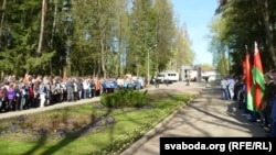 Прыкладна столькі ж працягвалася ля крыжа памяці акцыя актывістаў апазыцыі. На яе прыйшло паўтара дзясятка чалавек. Прамоўцы гаварылі пра ўтойваньне ўладай зьвестак пра наступствы Чарнобыля, калі адбылася аварыя. Крытыкавалі дзеяньні цяперашняга кіраўніцтва, якое заяўляе, што забруджаныя тэрыторыі прыдатныя для гаспадараньня і пражываньня.