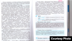 У сеціве зьявіліся здымкі пілётных падручнікаў, паводле якіх расейскія школьнікі будуць вывучаць гісторыю з новага навучальнага году. Перадусім адзначаецца гістарычная міратворчая місія прэзыдэнта Ўладзімера Пуціна, які валявым рашэньнем уратаваў крымчанаў ад украінскіх нацыяналістаў, абвясьціўшы стварэньне Крымскай фэдэральнай акругі ў складзе Расеі.