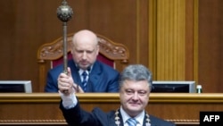 «Расея акупавала Крым, які быў, ёсьць і будзе ўкраінскім. Учора падчас сустрэчы ў Нармандыі я менавіта так і сказаў прэзыдэнту Пуціну — Крым ёсьць украінскім. І кропка», — заявіў Парашэнка.
