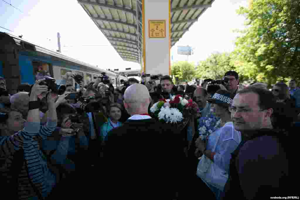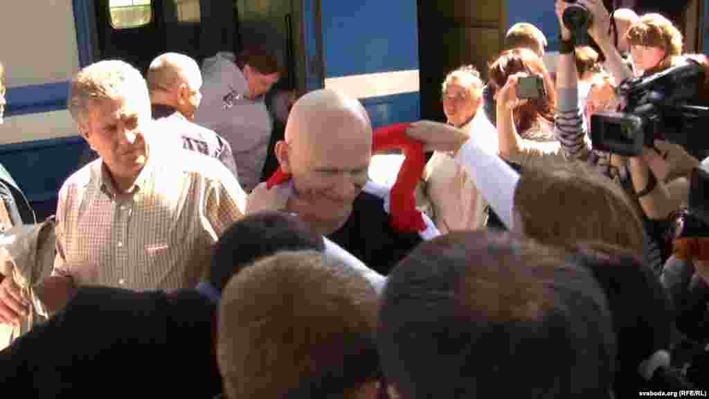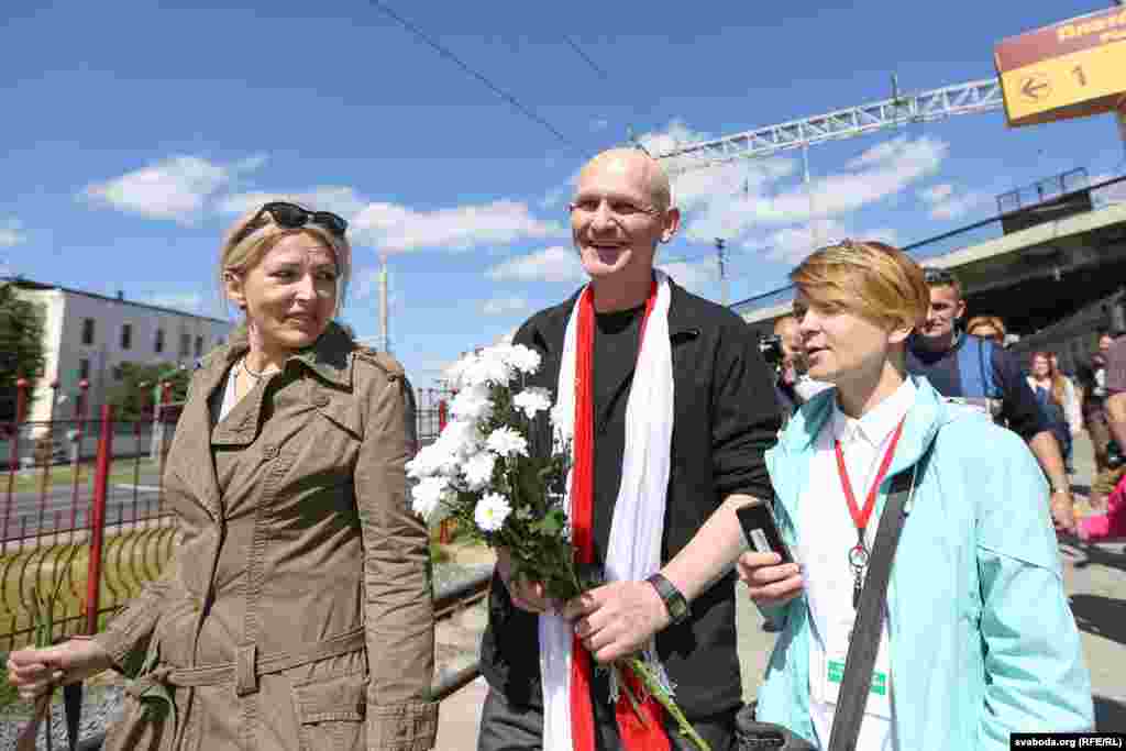 Алесь Бяляцкі, раптоўна вызвалены з турмы ў Бабруйску, а 15-й гадзіне 21 чэрвеня прыехаў у Менск.