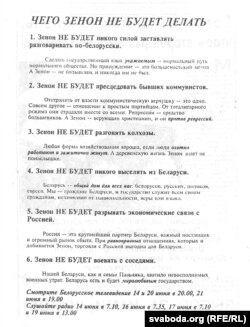 Гэтая ўлётка была надрукаваная па-расейску, ва ўсіх шасьці тэзісах «ня будзе» было набрана вялікімі літарамі.