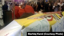 «Стала вядома, што супрацоўнікі паліцыі дастаўляюць у будынак ураду гумовыя кулі. Пратэстоўцы гэтым вельмі абураныя, і сытуацыя можа стаць больш напружанай. Частка дэманстрантаў пагражае акупаваць будынкі ўраду, калі кіраўнік ня сыдзе. Мірны этап пратэстаў, на жаль, можа хутка скончыцца», — такое паведамленьне прыйшло ад Сяргея праз WhatsApp а 13-й гадзіне менскага часу.