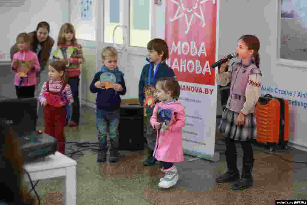 Штонядзелі дзеткі 3–7 гадоў зьбіраюцца ў галерэі «Ў» і, седзячы на руках у татаў і мамаў, разам зь імі вучаць беларускую мову.